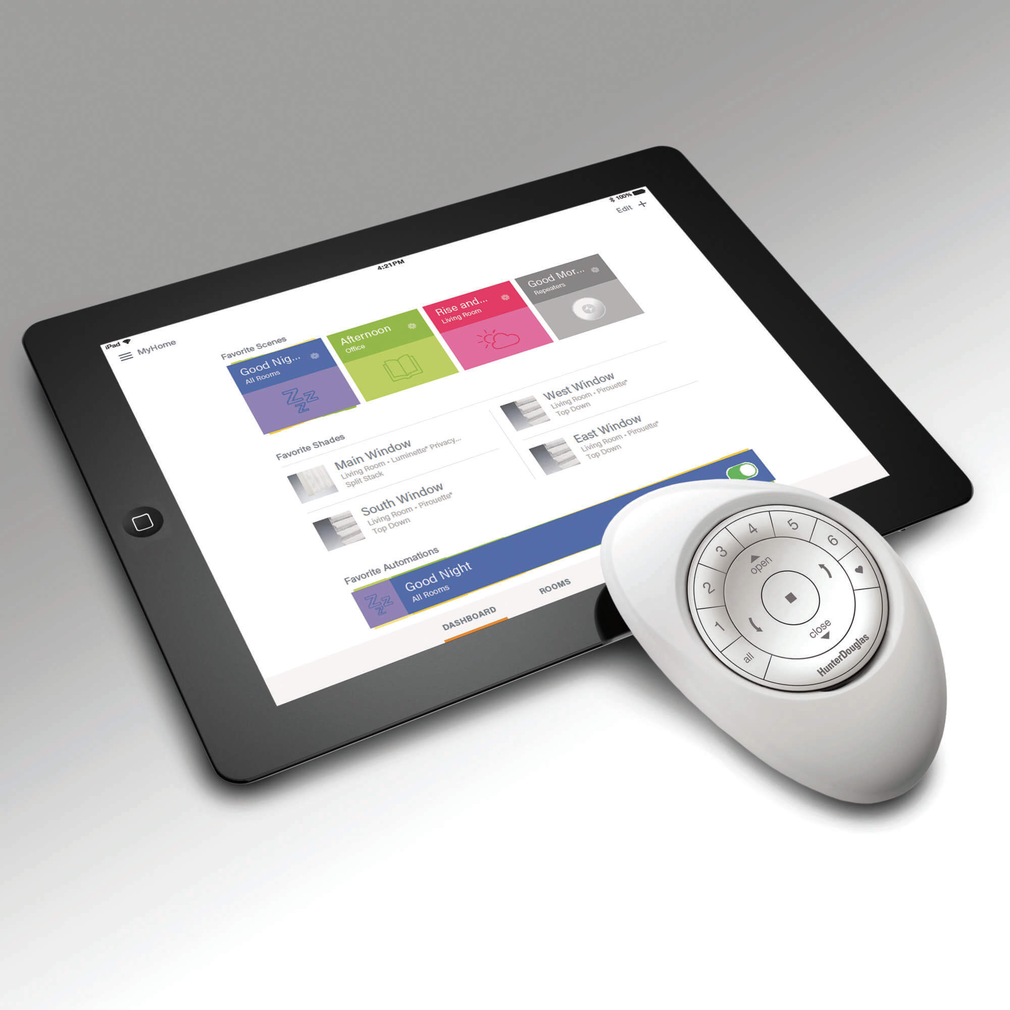 Alustra Architectural Shades can change the way you live your life with smart home motorization and connectivity. PowerView®, Hunter Douglas’ motorization system, combined with the PowerView Hub are all you need. Operate your shades with your mobile device, even when you’re not at home, or with a simple spoken phrase with your voice assistant.