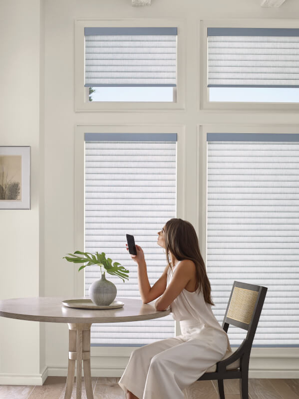 This battery-powered system allows for quick touch-and-go functionality. Move your shades by gently pulling down or pushing up on the wand. Tangled cords are a thing of the past, making the SoftTouch® Motorization system an ideal option for homes with pets and children.