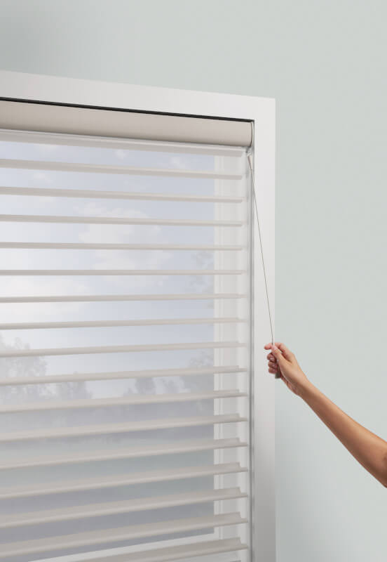 Wand control eliminates pull cords completely, replacing them with a wand for enhanced child and pet safety.