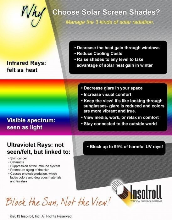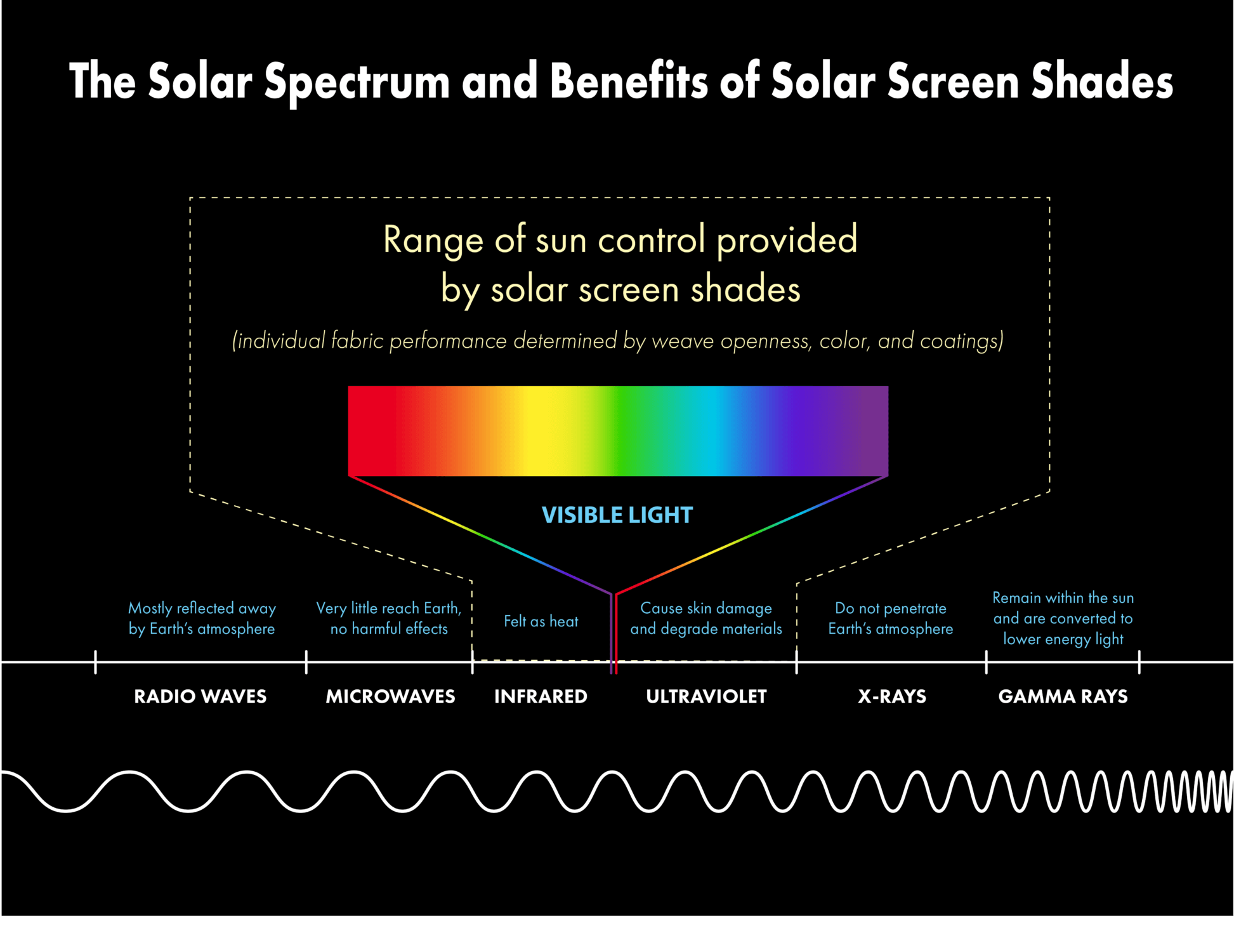 Solar shades work by blocking heat, glare, and harmful UV rays from entering the interior. See the questions below to read more about these solar shade benefits.